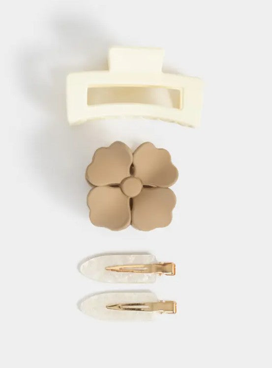 Set que incluye 2 piquitos con resina, 1 Gancho con forma de flor y 1 Gancho rectangular.
